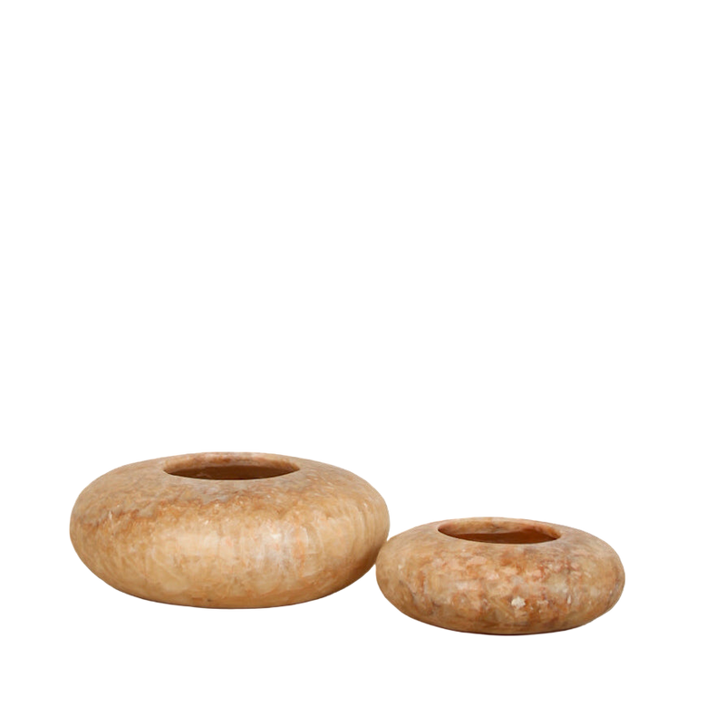 Alabaster is een natuurlijk gesteente en daar gebeurt iets bijzonders mee zodra je een kaarsje aansteekt. Het licht gloeit erdoorheen op een manier die je met geen enkel ander materiaal krijgt: zacht, warm en een beetje dromerig. En omdat alles handgemaakt is, is elke houder anders. Je haalt hiermee dus echt een uniek product in huis.